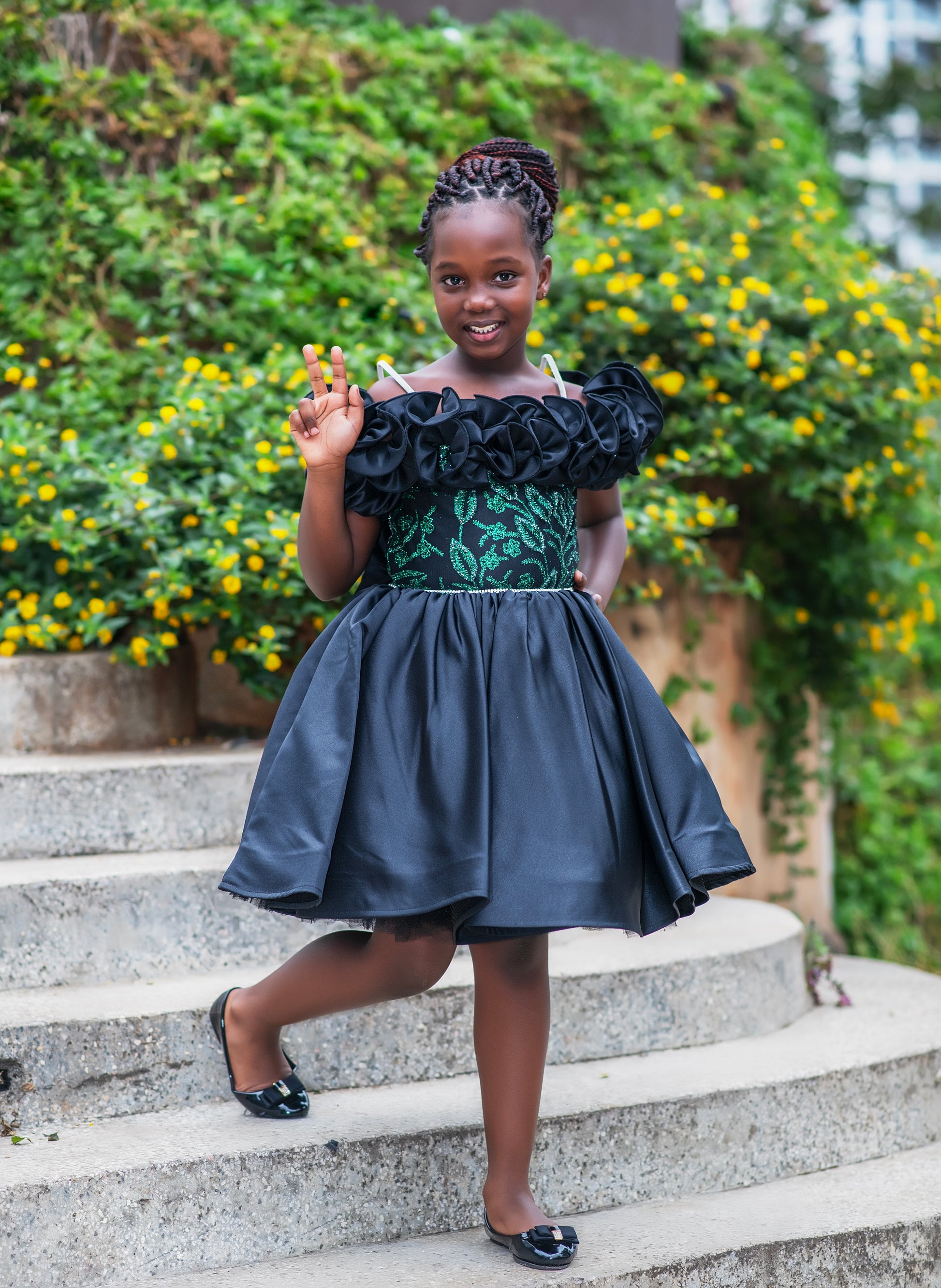 Black Rose Bloom Dress – Girls Occasion Gown with Embroidered Details